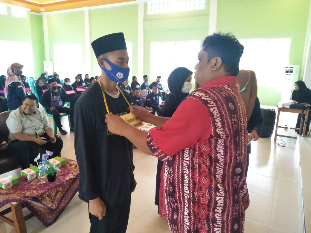 Pelepasan Tanda Peserta oleh Kasubag Akademik (Kanang Ulhadi) pada Penutupan Kegiatan Pengenalan Budaya Akademik dan Kemahasiswaan Sekolah Tinggi Agama Islam (STAI) Al-Haudl Ketapang Tahun 2020 di Auditorium. Jum’at, (04/09/2020) siang