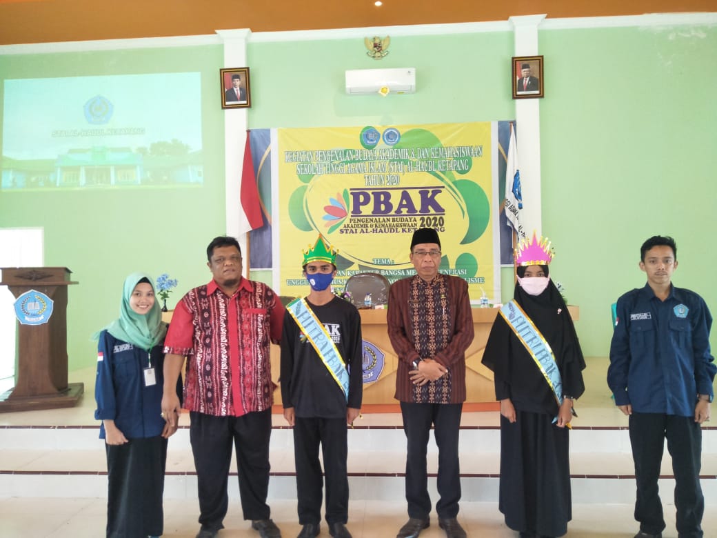 Foto Bersama Ketua Jurusan Tarbiyah, Kasubag Akademik, Presiden Mahasiswa, Ketua Panitia dan Peserta Terbaik PBAK STAI Al-Haudl Ketapang Tahun 2020. Jumat, (04/09/2020)
